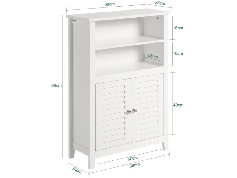 Platzsparender Badschrank mit 60 cm Breite – perfekt für enge Ecken in Badezimmern oder Fluren, auch als Unterschrank oder Kommode im Wohnzimmer nutzbar.