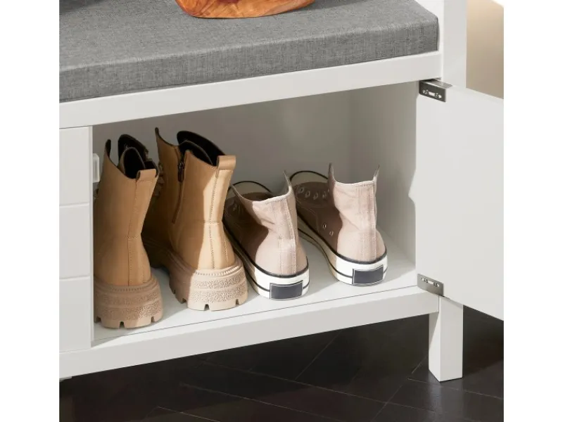10 cm Stauraum: Bewahren Sie Ihre Hausschuhe ordentlich im 10 cm hohen Raum unter der Bank auf.