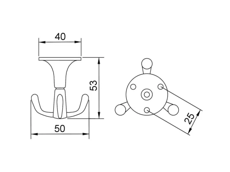 Höhe 53 mm / Durchmesser Ø 50 mm / Sockel Ø 40 mm / Bohrlochabstand 25 mm