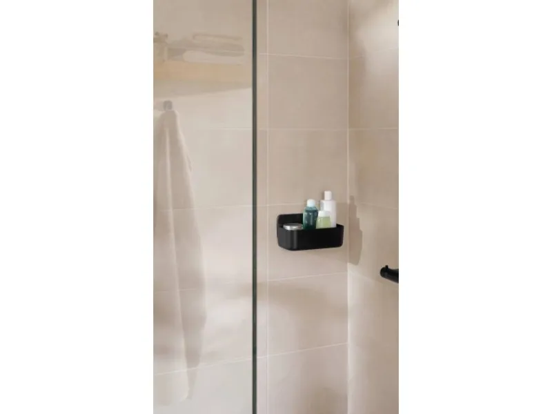 Bereichern Sie Ihr Badezimmer mit stylischen Duschkörben in trendigem Schwarz. Mit dem Tesa Lavaa Duschkorb Medium Schwarz müssen Sie sich keine Sorgen mehr um Ihr Chaos in der Dusche machen. In dem hochwertigen Kunststoffkorb lassen sich Duschgels, Haarshaampoos u.v.m. einfach und sicher verstauen. Die perfekte Lösung. Dank der Haftkraft der Tesa Powerstrips Waterproof-Technologie lässt sich der Korb einfach an der Oberfläche anbringen, ohne Bohren oder zusätzliches Werkzeug – und auch ohne Beschädigung des Untergrundes wieder rückstandsfrei entfernen. Die mitgelieferten Klebestreifen Tesa Powerstrips Waterpoof XL sorgen für eine wasserfeste Verklebung mit einer max. Haltekraft von 3 kg. Die Streifen lassen sich leicht und rückstandslos entfernen.