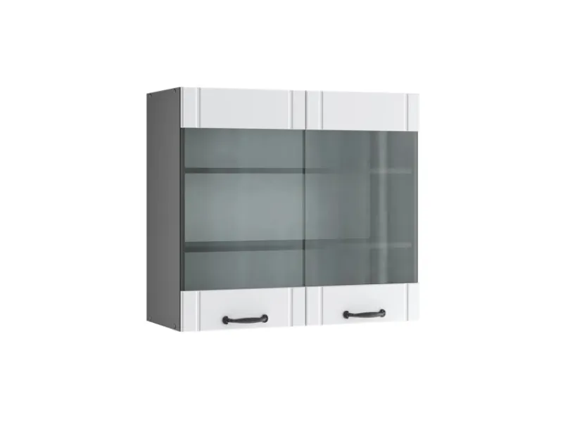 Die Hängevitrine hat Breite 80 cm, Höhe 72 cm und Tiefe 34,1 cm