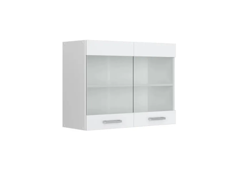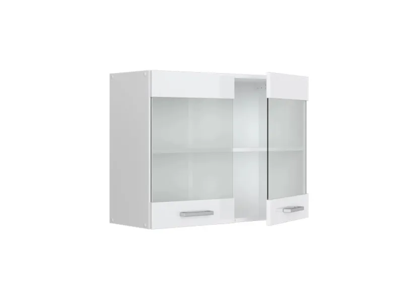 Die Hängevitrine hat Breite 80 cm, Höhe 60 cm und Tiefe 31 cm