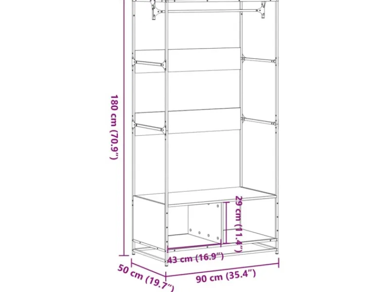 Gesamtabmessungen: 90 x 50 x 180 cm (B x T x H)