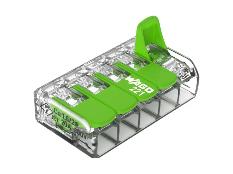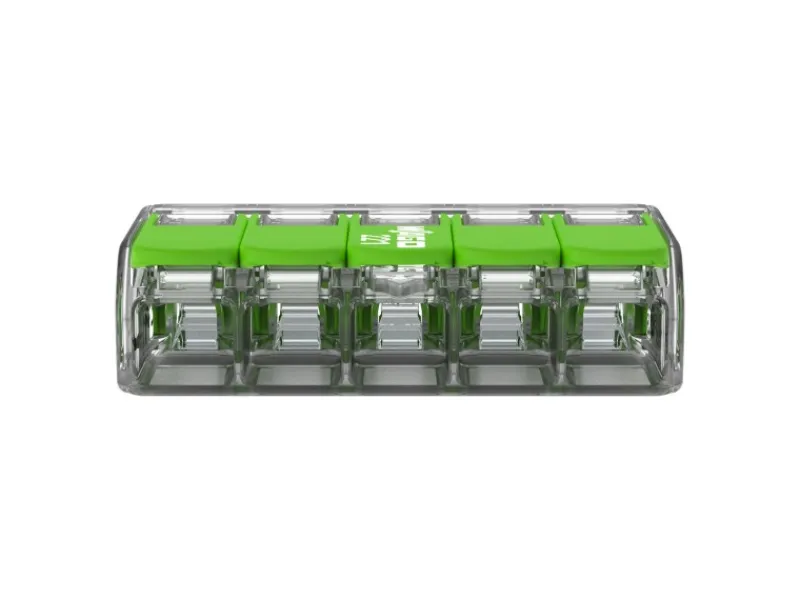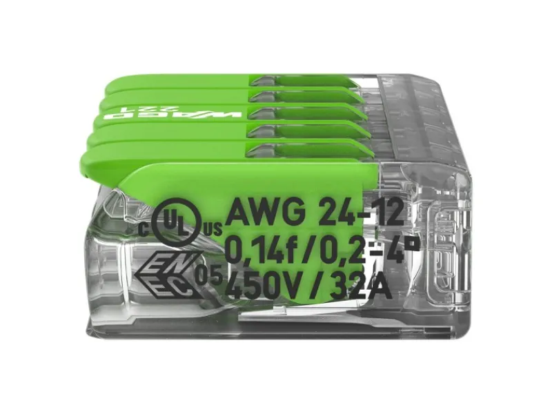 Die Wago Verbindungsklemme 221-425 mit Hebeln und fünf Leitern ist eine einfache und sichere Lösung für deine elektrischen Verbindungen. Mit dieser praktischen Klemme verbindest du mühelos alle gängigen Leiterarten – von fein bis mehrdrähtig – mit einem Querschnitt von 0,14 bis 4 mm².