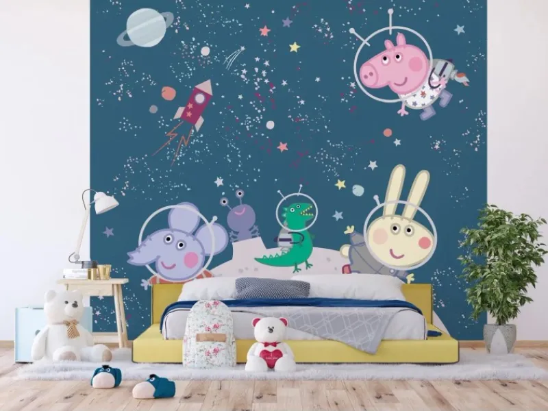 Diese tolle Fototapete mit Peppa Wutz in Dunkelblau verwandelt das Kinderzimmer in ein fröhliches Abenteuerland. Kombiniert mit hellen Farben und modernen Materialien, entsteht eine angenehme und freundliche Atmosphäre, die zum Spielen, Toben und Lachen einlädt. Maße, Rapport und Musterversatz Die Maße dieser Fototapete sind 3 x 2,7 m (Breite x Länge). Diese Fototapete besteht aus 6 Paneelen mit einer Breite von 50 cm. Tapezieren Das Anbringen dieser Vliestapete ist einfach und unkompliziert: nachdem der Vlies-Kleister direkt auf die Wand aufgebracht wurde, kann die Tapete angesetzt und anschließend glattgestrichen werden. Eventuelle Überstände können mit einem Cuttermesser entfernt werden. Beim Tapezieren wird kein Tapeziertisch benötigt und die Tapete ist auch nach Jahren restlos trocken abziehbar. Sofort startklar. Am einfachsten ist es, direkt auch ein Wallpro PRO-933 Tapezierset zu bestellen. Dieses Tapezierset enthält alle Tapezierwerkzeuge, die beim Tapezieren von Vliestapeten benötigt werden. Diese Fototapete kann über das Suchfenster auf der OBI Seite schnell gefunden und bestellt werden. So wird das Tapezieren zum Kinderspiel. Hergestellt in den Niederlanden Dieses Tapetenmuster wurde auf einer hochwertigen, FSC®-zertifizierten Vliestapete gedruckt. Die verwendeten Farben sind zudem wasserbasiert. Anwendung und Verwendung Diese Fototapete ist perfekt für die Wandgestaltung eines Kinderzimmers oder eines Mädchenzimmers.