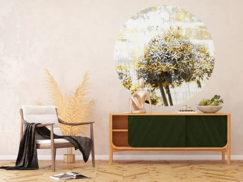 Sanders & Sanders Selbstklebende Runde Tapete Tulpe Grau und Gelb Ø 140 cm 601127