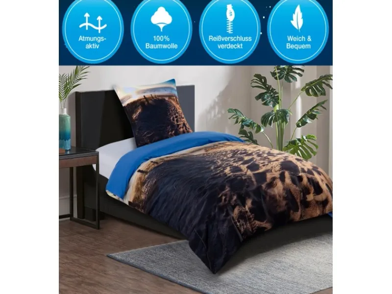 Durch die atmungsaktive und hautfreundliche Baumwolle schläft es sich besonders gut. Die feuchtigkeitsabsorbierende und temperaturausgleichende Bettwäsche sorgt für ein ideales Schlafgefühl.