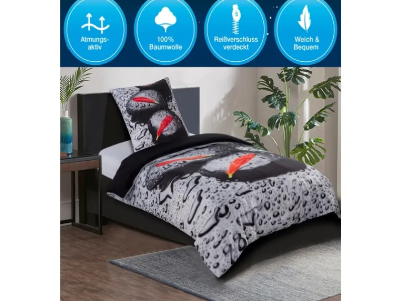 Premium Bettwäsche aus 100% Baumwolle, weich und sanft, OEKO-TEX zertifiziert – Ganzjahresqualität.