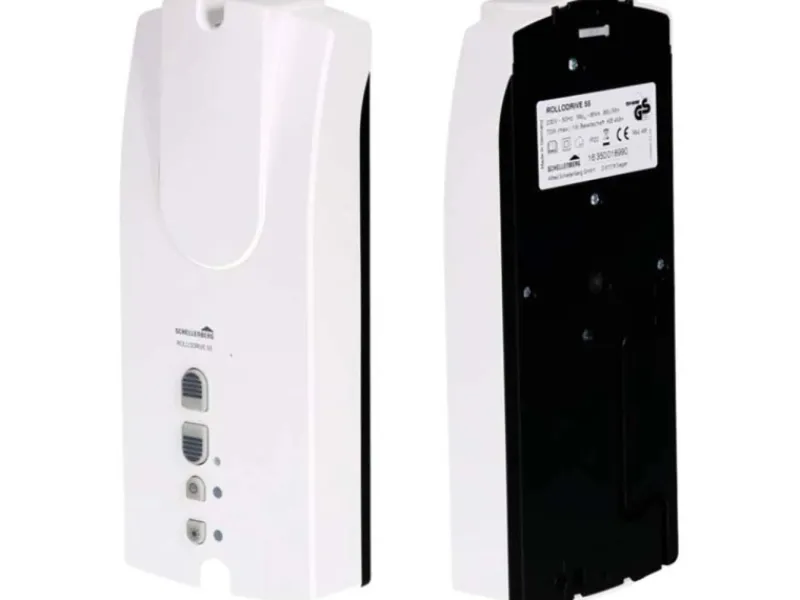 Die integrierte Zeitautomatik macht es möglich, den Rollladen zu gewünschten Uhrzeiten automatisch hoch- oder herunterfahren zu lassen. Dafür ist jeweils eine Auf- bzw. Abfahrt programmierbar. Blockiert der Rollladen oder trifft er auf ein Hindernis, stoppt der elektrische Gurtwickler automatisch. Große Tasten am RolloDrive 55 erleichtern die Bedienung und die Einstellung der Endlagen. Die Stromversorgung erfolgt über ein Netzkabel, sollte diese durch einen Stromausfall oder Entfernen des Netzsteckers unterbrochen werden, bleiben die Endlagen gespeichert.