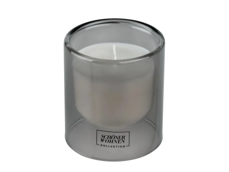 Graues Kerzen-Glas mit weißer Duftkerze