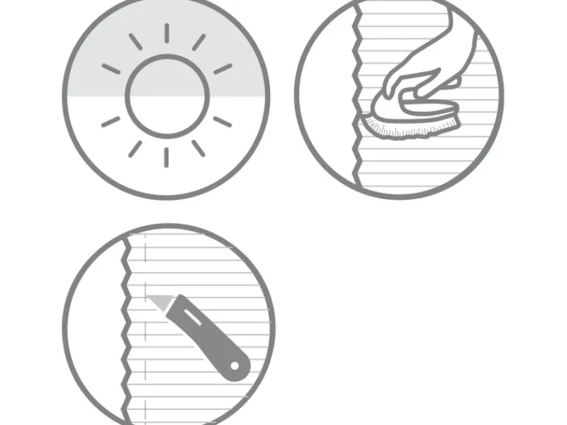 An den farblich angepassten Schnüren lässt es sich mit Hilfe der mitgelieferten Träger in den Fensterfalz schrauben. Alternativ sind zwei Klebe- sowie zwei Arten von Klemmmontagen möglich. Die dafür benötigten Träger sind separat im Zubehör erhältlich. Die Bedienschienen, Bediengriffe und Träger sind in Weiß gehalten, wodurch sie sich optisch unauffällig an das Plissee anfügen und so den Stoff noch besser zur Geltung bringen.