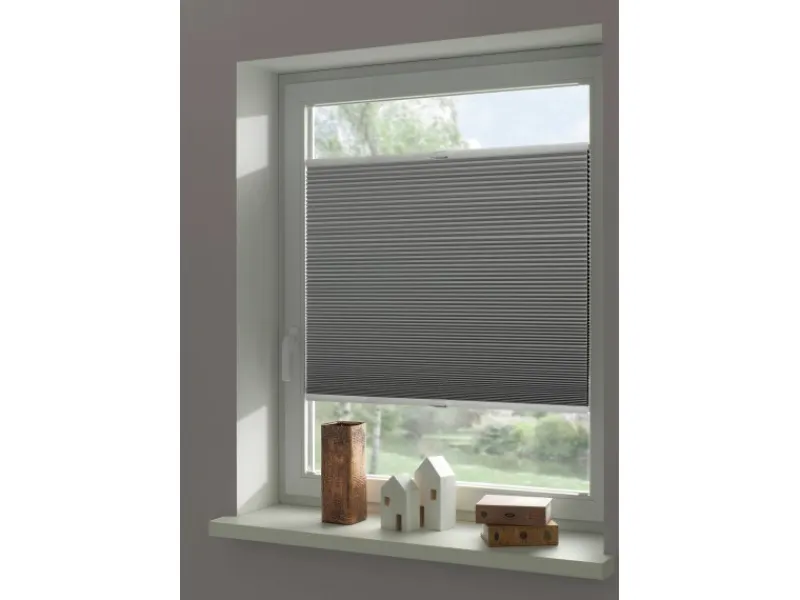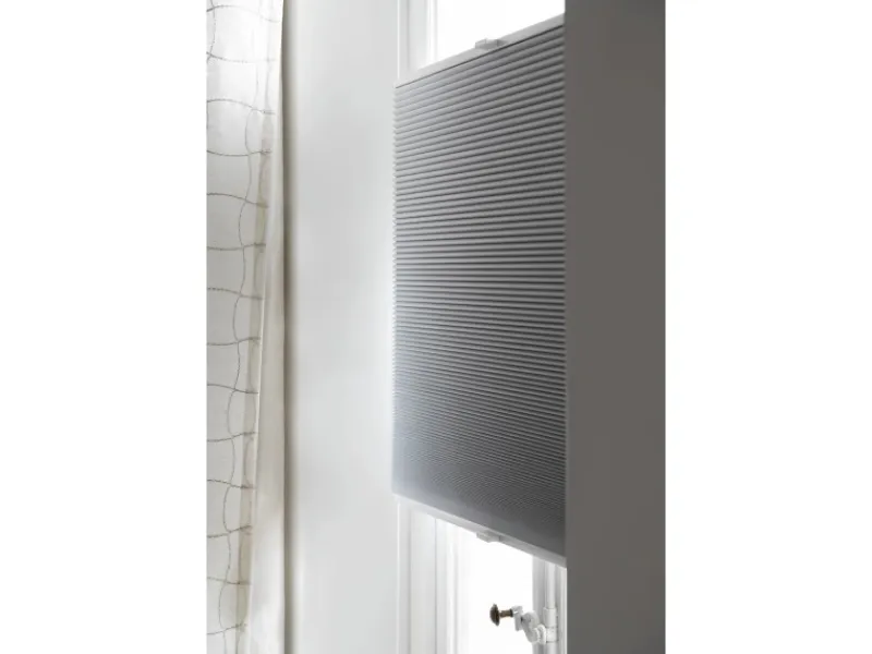 Die Montage kann entweder mit den mitgelieferten Trägern als Schraubmontage in den Fensterfalz erfolgen, oder aber mit den separat im Zubehör erhältlichen Klebe- oder Klemmlösungen. Da es sich um ein verspanntes Plissee handelt, ist es auch bei gekipptem Fenster ideal fixiert. Die Bedienschienen, Bediengriffe und Träger sind in Weiß gehalten, wodurch sie sich optisch unauffällig an das Plissee anfügen und so den Stoff noch besser zur Geltung bringen.