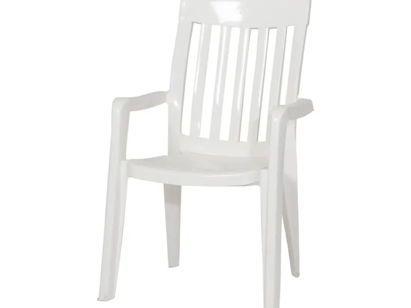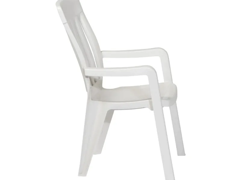 Optimalen Sitzkomfort finden Sie auf dem weißen Palma Stapelsessel. Mehrere Stapelsessel sind bei Nichtgebrauch platzsparend stapelbar.