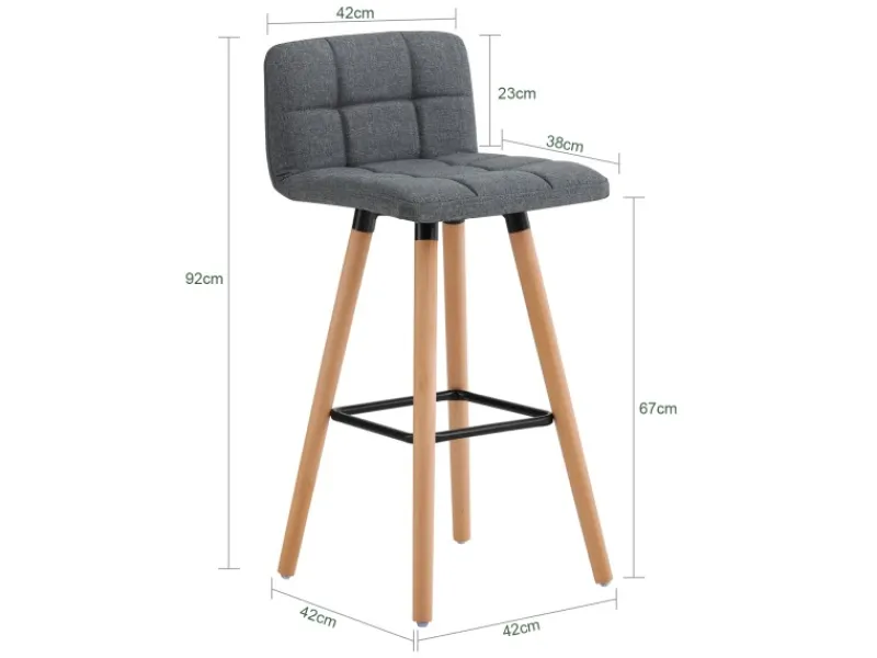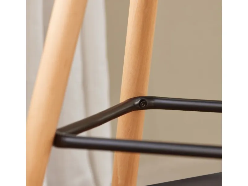 Material: Beine aus Kautschukholz, Fußstütze aus Eisen, Sitz aus Polyester.