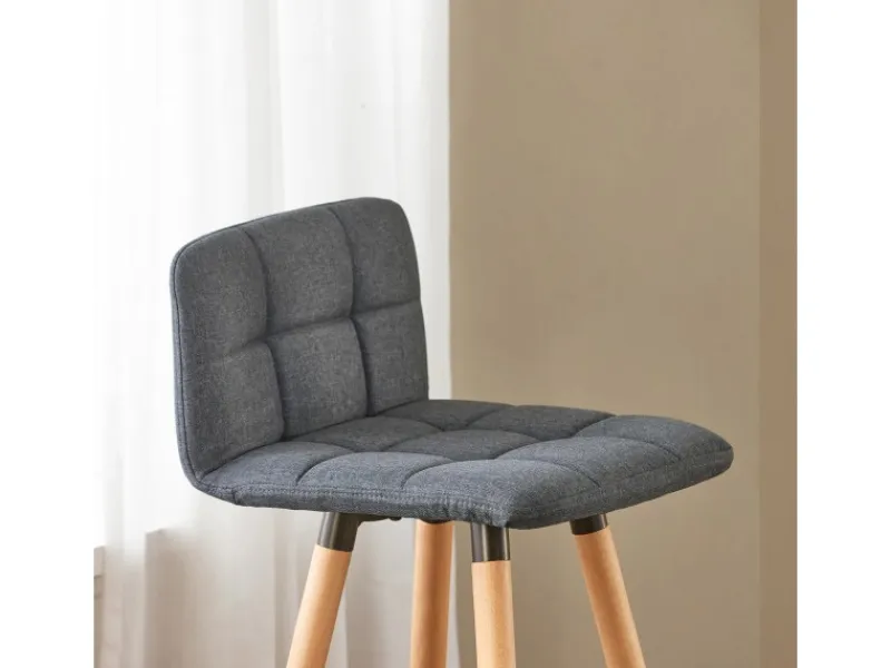 Die gesteppte Sitzfläche macht diesen Barhocker zu etwas ganz besonderem und die integrierte Fußstütze aus Eisen lässt Ihre Füße nicht hängen.