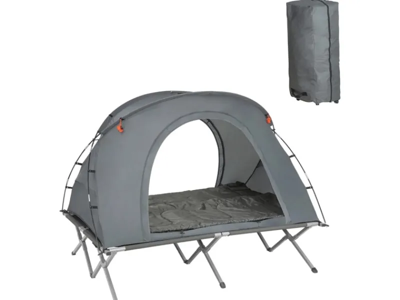 Inklusive: Feldbett, Zeltdach, Matratze, Schlafsack und aufblasbares Kissen (inkl. passender Bezüge),Tragetasche.