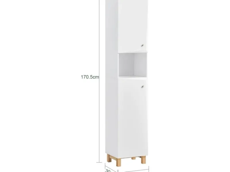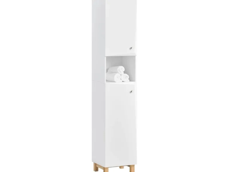 Viel Stauraum für die täglichen Dinge im Bad: Hochschrank mit 2 Türen und 1 offenen Fach.