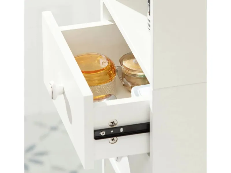 Dieses stilvolle ist ein idealer Ort, um Handtücher, Hygieneartikel, Pflegeprodukte wie beispielsweise Badeschaum und andere Haushaltsgegenstände aufzubewahren.