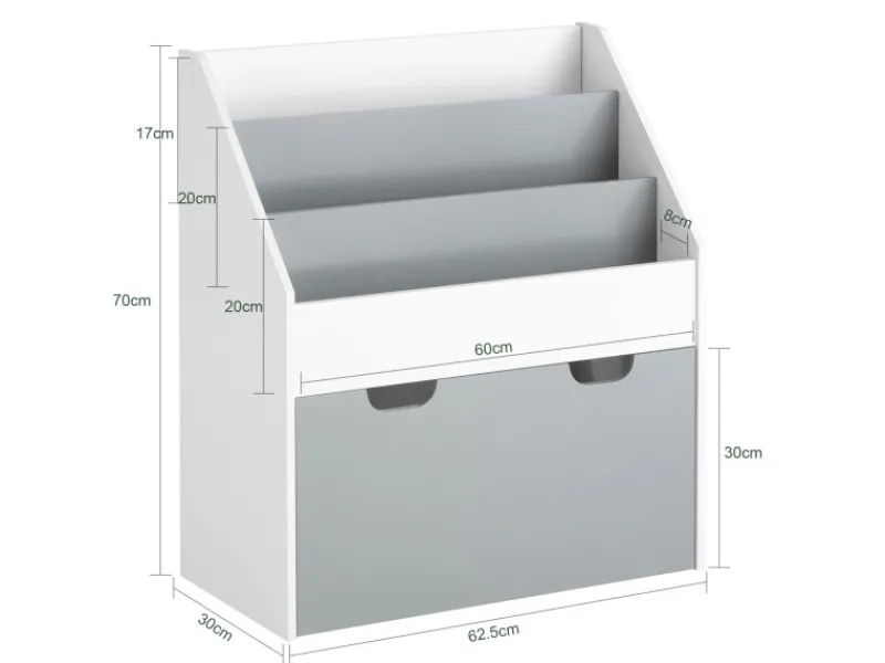 Die Höhe ist auch optimal, damit Ihre Kinder die Bücher einfach einlegen und entnehmen können.