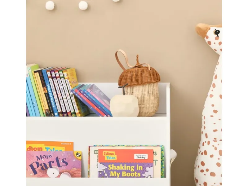 Mit 2 Fächern zum Ordnen und Sammeln von Kinder Büchern, Spielsachen usw. In das Fach an der Seite können Gegenstände, die nicht häufig gebraucht werden, abgelegt werden.