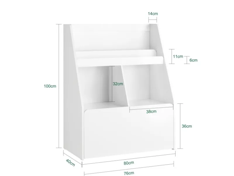 Das Kinderregal mit 2 Fächern und 2 Ablagen bietet ausreichend Platz für Bücher, Bauklötze und sogar das Lieblingskuscheltier Ihres Kindes.