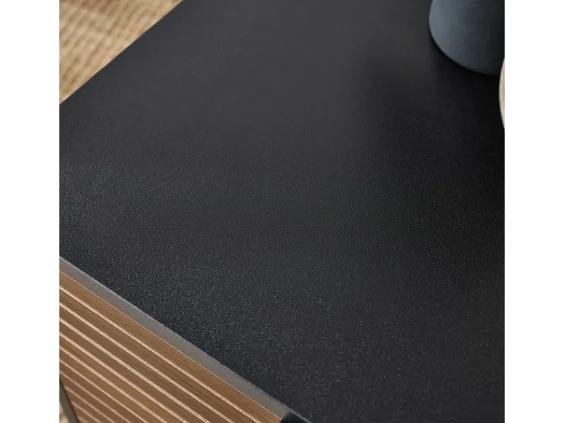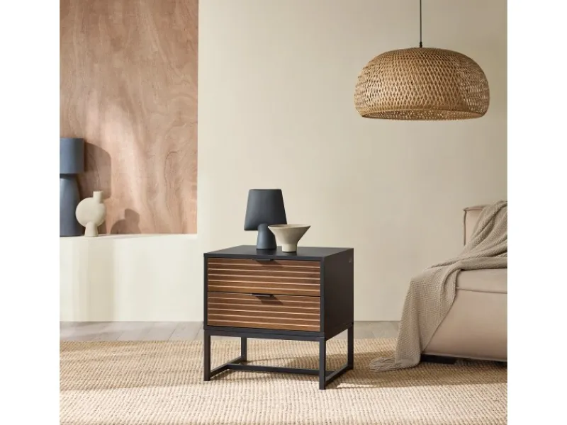 Die Beine aus schwarzem Metall verleihen diesem Nachttisch eine industrielle Atmosphäre.
