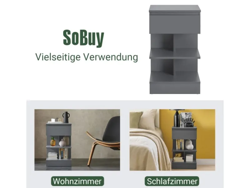 Ob als Beistellschrank im Wohnzimmer oder als Nachttisch neben dem Bett, diese Nachtkonsole ist aufgrund des kompakten Designs überall einsetzbar.
