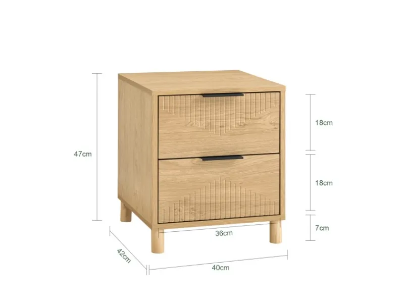 Mit zwei Schubladen bietet dieser Nachttisch viel Platz – ideal für Schlafzimmer oder Wohnzimmer.