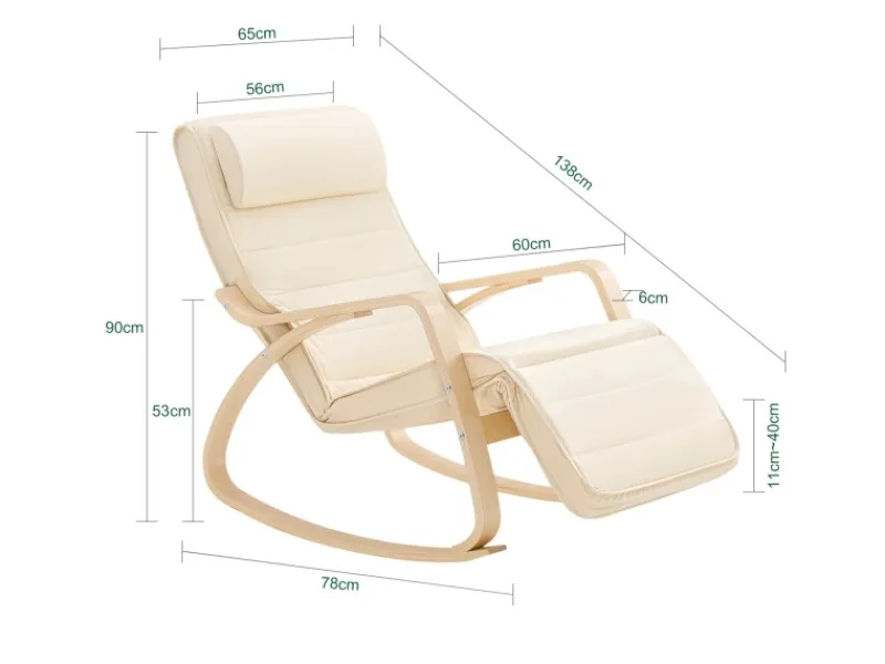 Fünffach verstellbare Fußstütze und Schaukelfunktion bieten individuellen Komfort beim Entspannen.