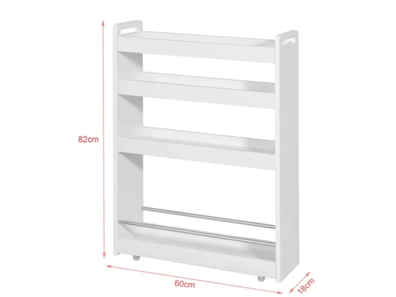 Schmaler Rollwagen eignet sich als Küchenwagen, Badezimmerregal, Kosmetikwagen oder Bastelwagen. Optimal für platzsparende Aufbewahrung von Handtüchern, Kosmetik und Zubehör.