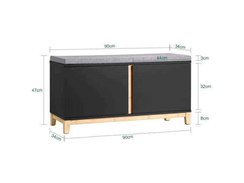 Diese Schuhbank hat vier Holzbeine aus Bambus, um Stabilität und starke Belastbarkeit zu gewährleisten.