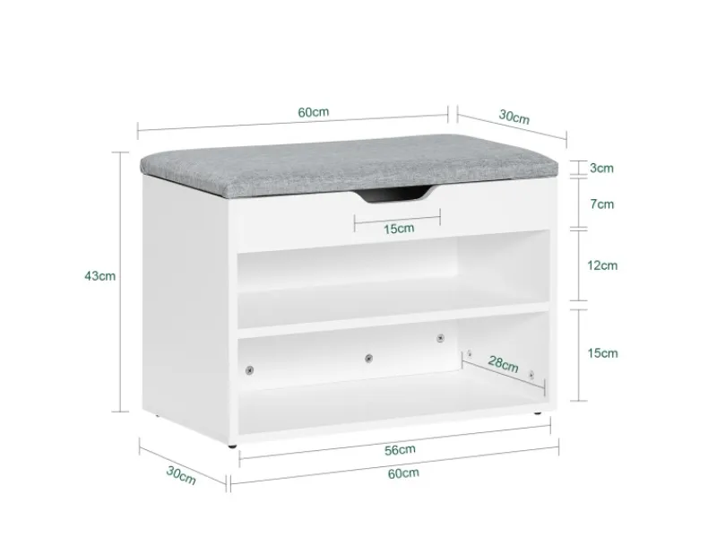 Platzsparend & stabil: Schuhbank, Sitzbank, Schuhregal und Truhe in einem – 60x43x30cm, Sitzbank mit Stauraum, Holzfüßen, bis 120kg tragfähig – perfekt für Flur & Kommode.