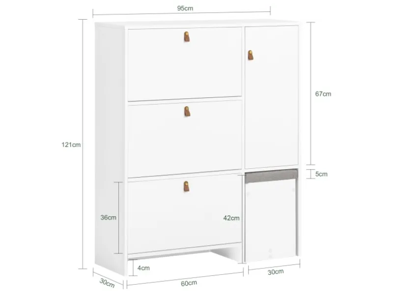 Durch 3 Kippfächer mit 6 Ablageflächen im Inneren, können Sie Ihre Schuhe ordentlich verstauen.