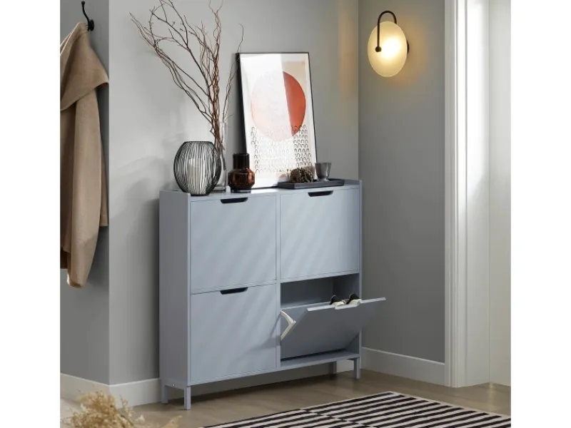 Durch vier Kippfächer mit 8 Ablageflächen im Inneren, können Sie Ihre Schuhe ordentlich verstauen.