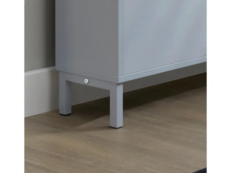 Die stabile Konstruktion gibt dem Schrank einen sicheren Stand, ferner können Sie ihn mit einem Kippschutz an der Wand befestigen, was die Stabilität erhöht.