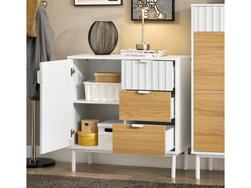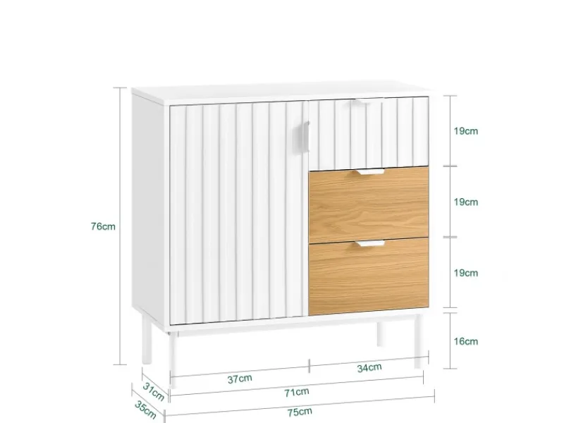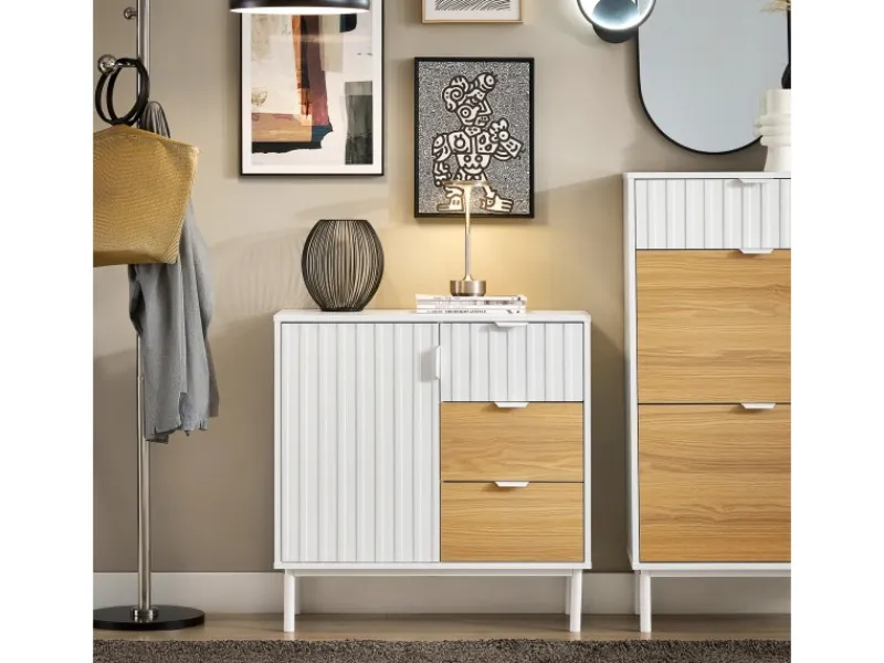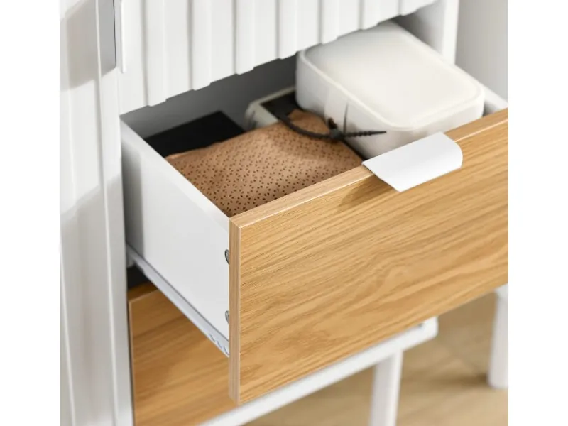 In den drei Schubladen können kleine Gegenstände wie Schals und Schlüssel aufbewahrt werden.