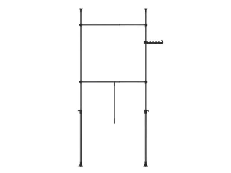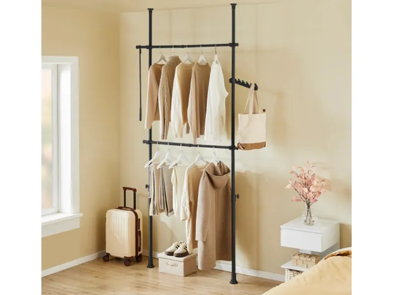 Mit 2 Teleskopstangen und 2 Kleiderstangen entsteht ein flexibler Kleiderschrank für jedes Zimmer.