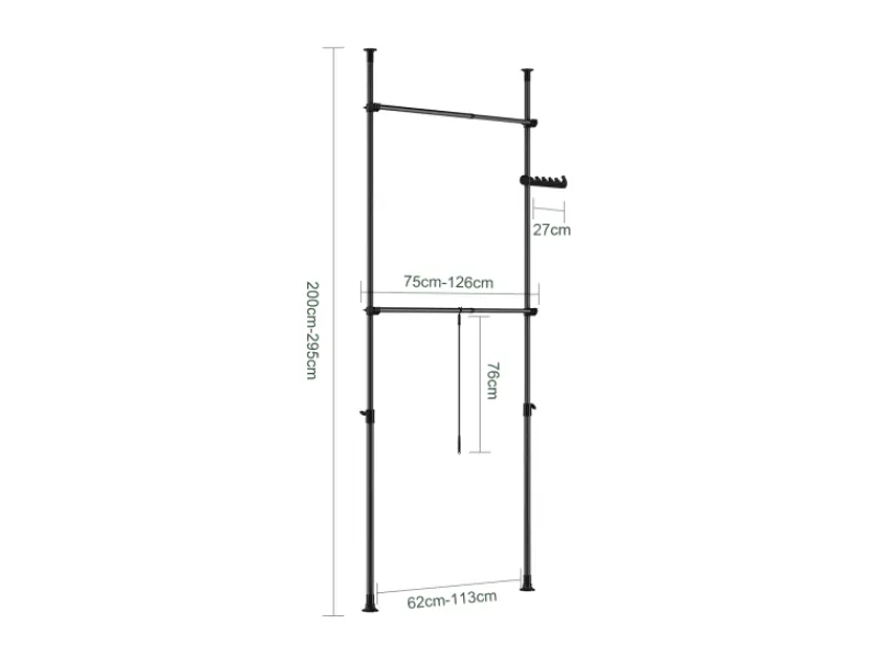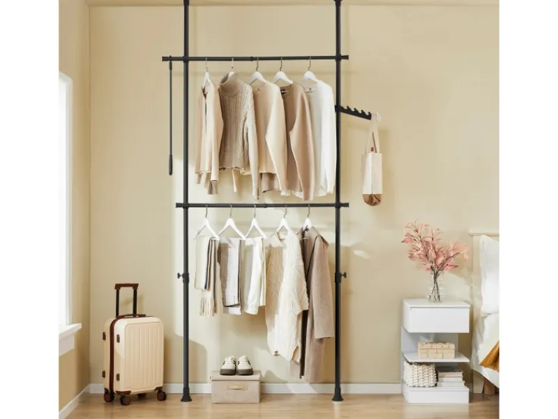 Zwei stufenlos verstellbare Kleiderstangen ermöglichen Übersicht, Ordnung und bieten viel Platz für Kleider, Mäntel, Oberteile und Hosen.