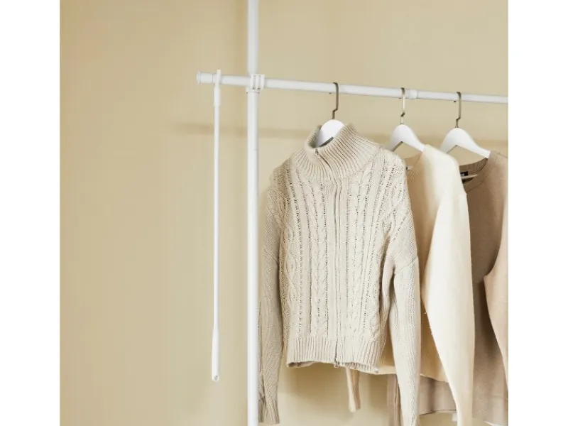 Mit 2 Teleskopstangen und 2 Kleiderstangen entsteht ein flexibler Kleiderschrank für jedes Zimmer.