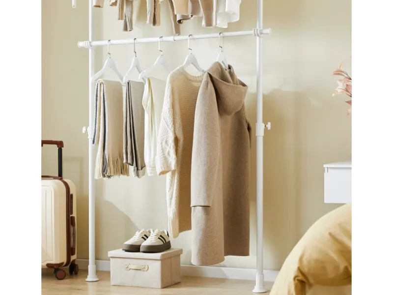 Zwei stufenlos verstellbare Kleiderstangen ermöglichen Übersicht, Ordnung und bieten viel Platz für Kleider, Mäntel, Oberteile und Hosen.