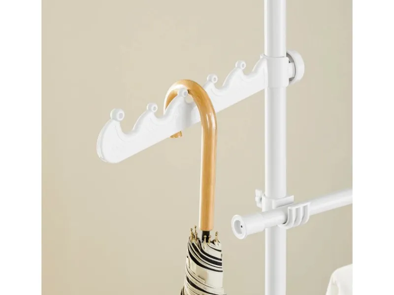 Mit seitlich angebrachtem Kleiderhaken für Hüte, Mäntel, Krawatten, Schals und Taschen.