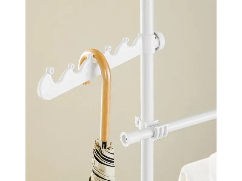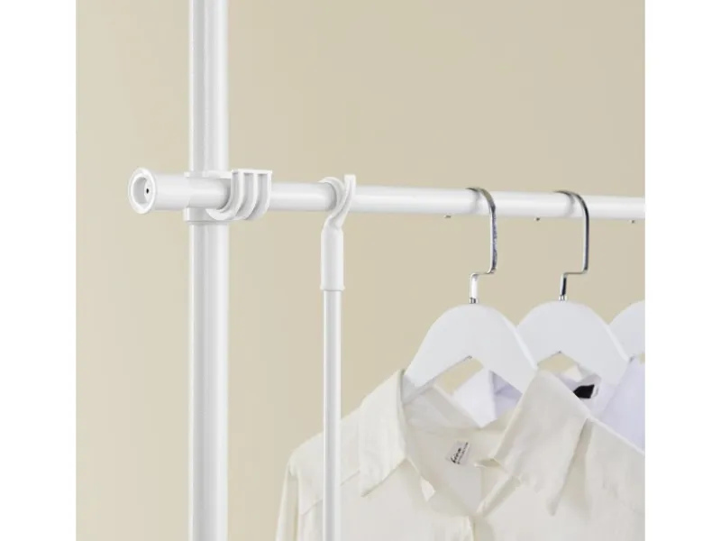 Mit der verstellbaren Konstruktion lassen sich Querstangen und Layout an Raum und Kleiderlänge anpassen – Jacken, Kleider und Hemden hängen knitterarm und übersichtlich.