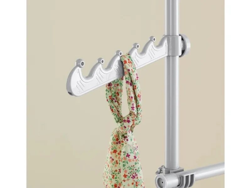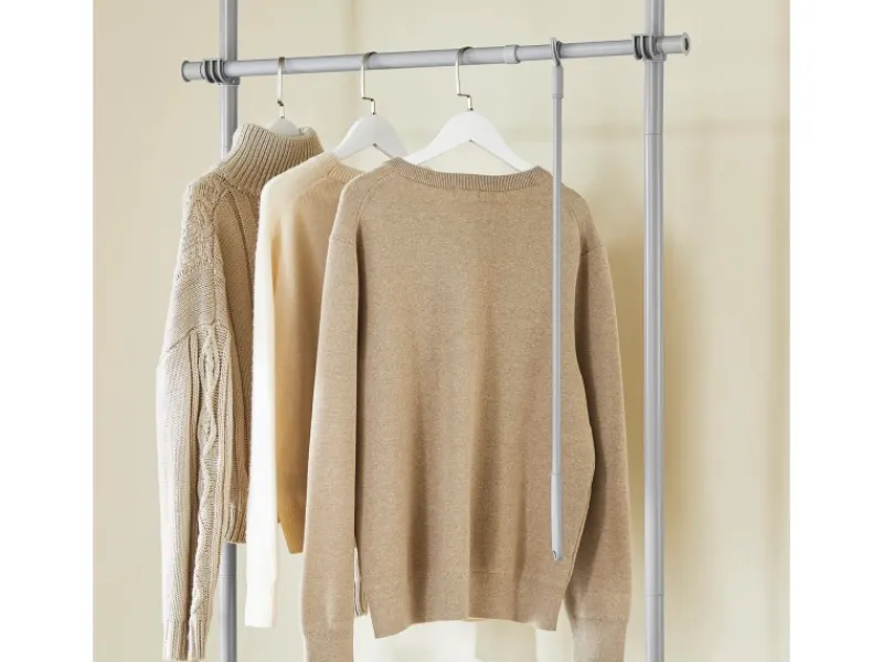 Mit der verstellbaren Konstruktion lassen sich Querstangen und Layout an Raum und Kleiderlänge anpassen – Jacken, Kleider und Hemden hängen knitterarm und übersichtlich.