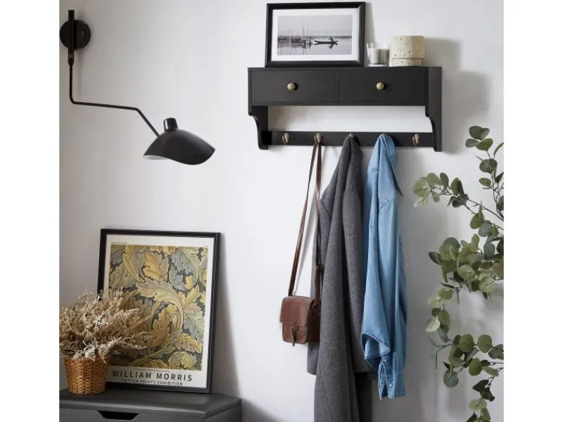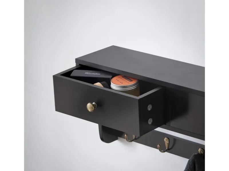 Schöne Garderobe mit zwei Schubladen und fünf Haken.
