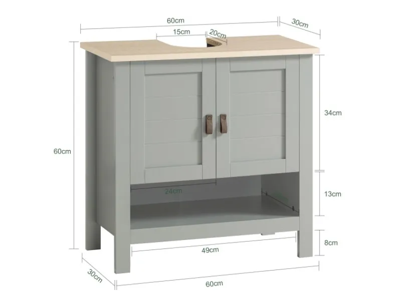Platzsparend unter dem Waschbecken: Mit einer Größe von 20 x 15 cm ist die Öffnung für den Siphon groß genug und für verschiedene Waschbecken-Arten geeignet.