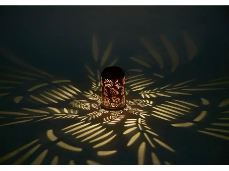 Dekorative Solar-LED-Laterne mit ausgestanztem Blätter-Design für stimmungsvolle Lichteffekte