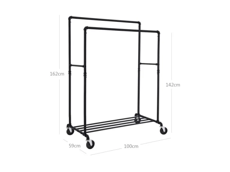 Aufhängen von leichten Cocktailkleidern? Natürlich gar kein Problem! Der ganze Ständer ist mit bis zu 110 kg belastbar. Dank der 4 PP-Universalrollen können Sie die Doppelkleiderstange mühelos an jede beliebige Stelle schieben, 2 davon sind arretierbar, wodurch er immer an seinem Platz bleibt.