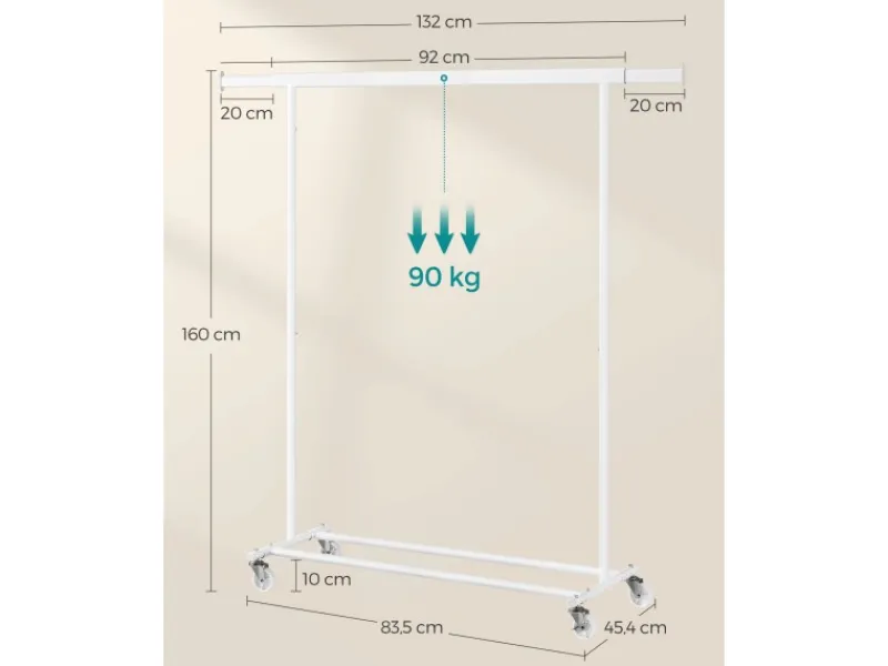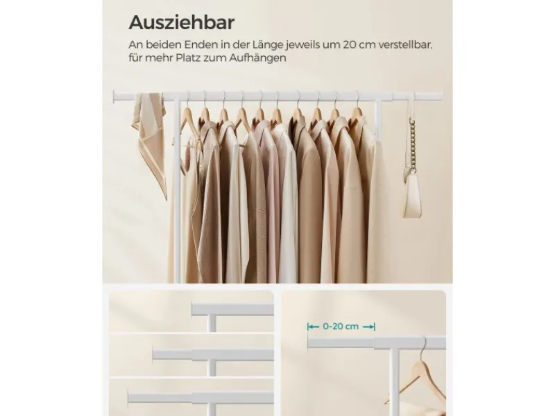 Die ausziehbare Kleiderstange verlängert sich um weitere 20 cm