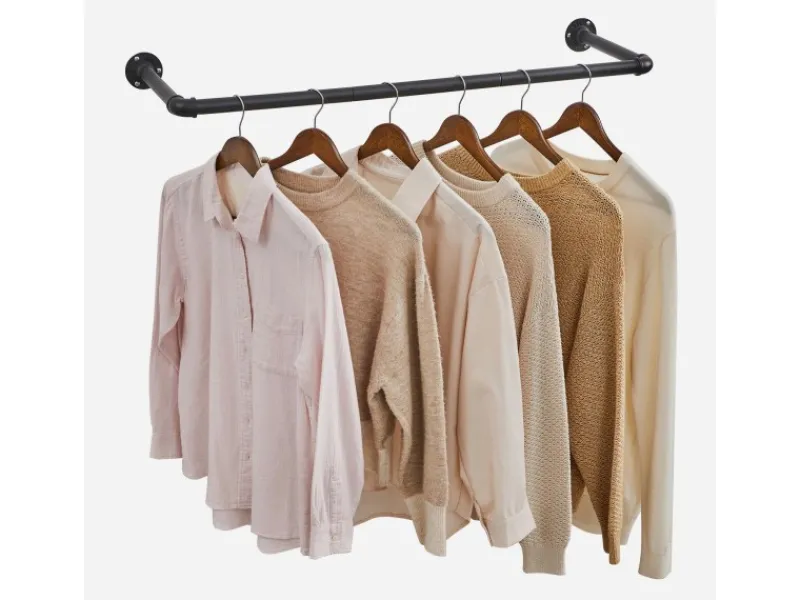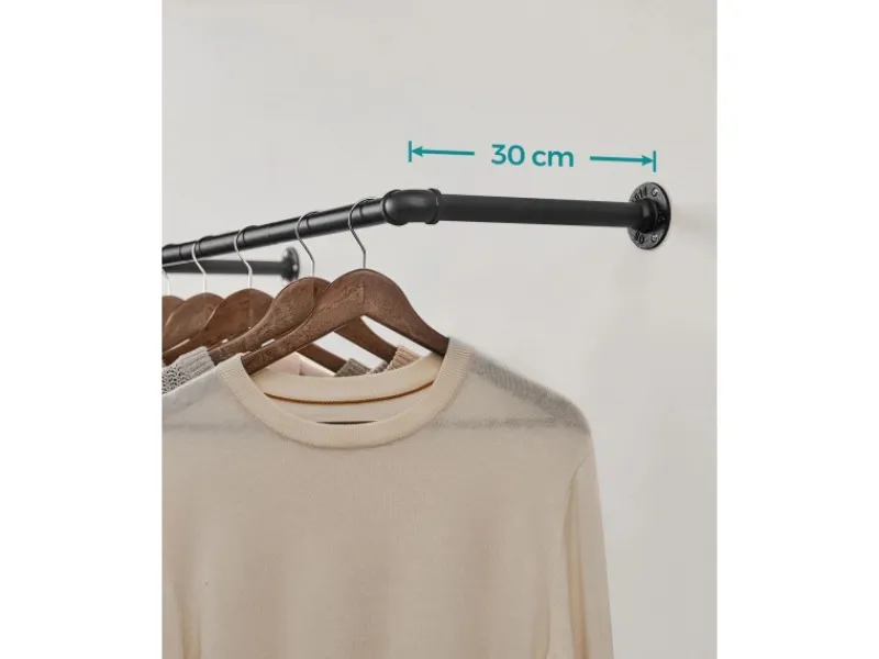 Sie müssen einfach nur die Rohre miteinander verbinden und an der Wand befestigen. Die Metallstange ist gut belastbar (bis 60 kg bei Montage an einer massiven Ziegel- oder Betonwand, bis 45 kg bei Montage an einer Holzwand). Nutzen Sie die Kleiderstangen in Ihrer Waschküche, um nasse Kleidung zum Trocknen aufzuhängen, in Ihrem Schlafzimmer für Ihre schönsten Outfits oder in Ihrem Geschäft, um Ihre Ware zu präsentieren.