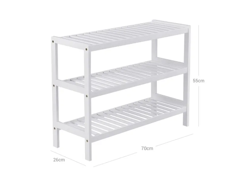 Es ist außerdem langlebig und stabil, sodass jedes Schuhregal eine statische Belastung von 10 kg hat. Denken Sie nicht, dass dieses Schuhregal nur ein Schuhregal ist. Mit einer kompakten Größe von 26 x 70 x 55 cm können Sie es als Pflanzenregal in Ihrem Wohnzimmer, als Aufbewahrungsorganisator in Ihrer Küche oder als Mini-Bücherregal in Ihrem Schlafzimmer verwenden.